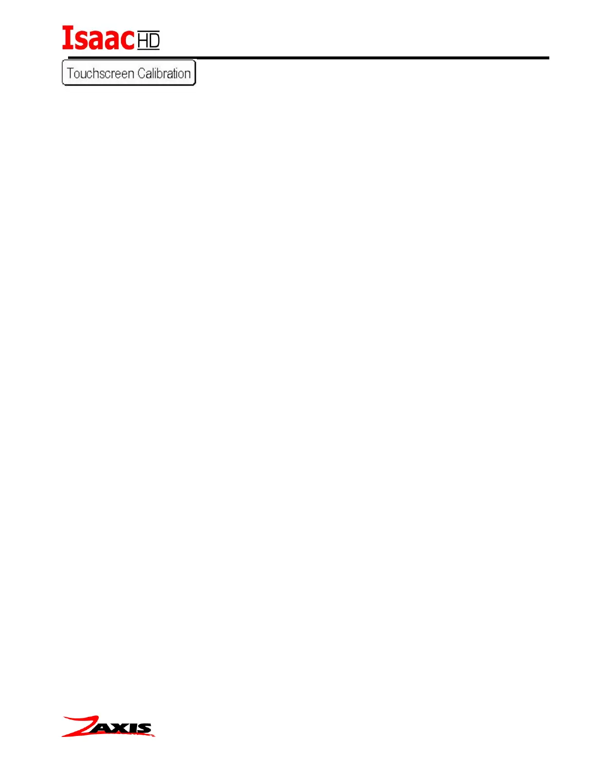The touch screen has been factory set. Typical use of the Isaac will not require this function to