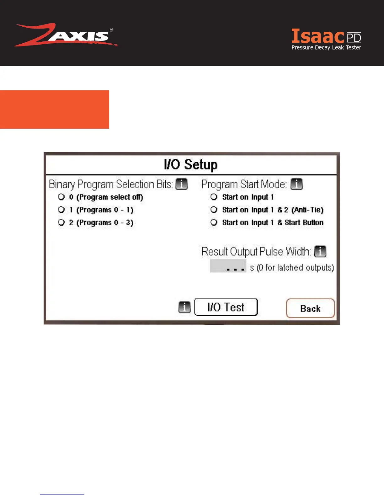 This screen allows the user to test the input bit pattern to help de bug wiring from the