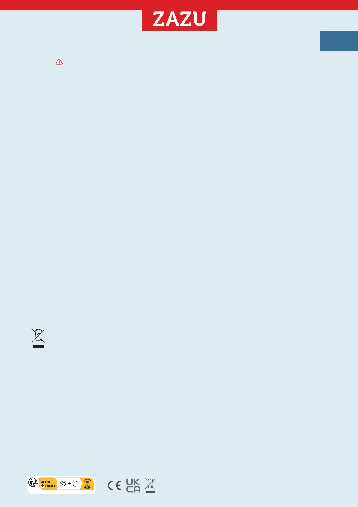 - Deze ZAZU product voldoet aan de EU, CA, USA, AU, CN, RU en NZ wet- en regelgeving.