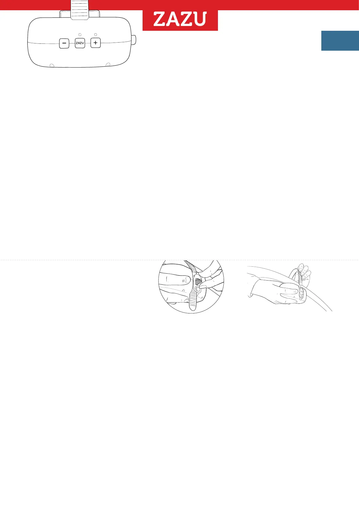 - For at aktivere grædesensoren skal du trykke på den røde ZAZU-knap. Den røde LED-lampe