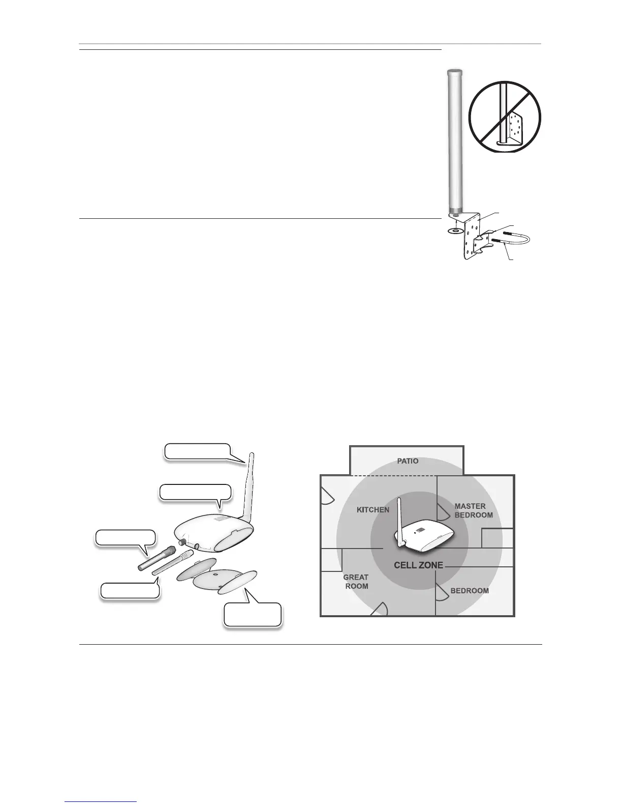To mount External Antenna to a at surface: Attach antenna to pole