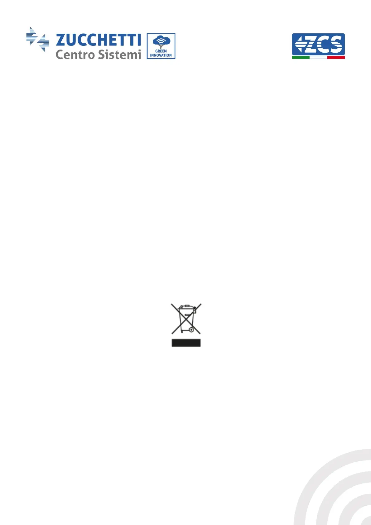Zucchetti Centro Sistemi S.p.a. is not liable for the disposal of the equipment, or parts thereof, which