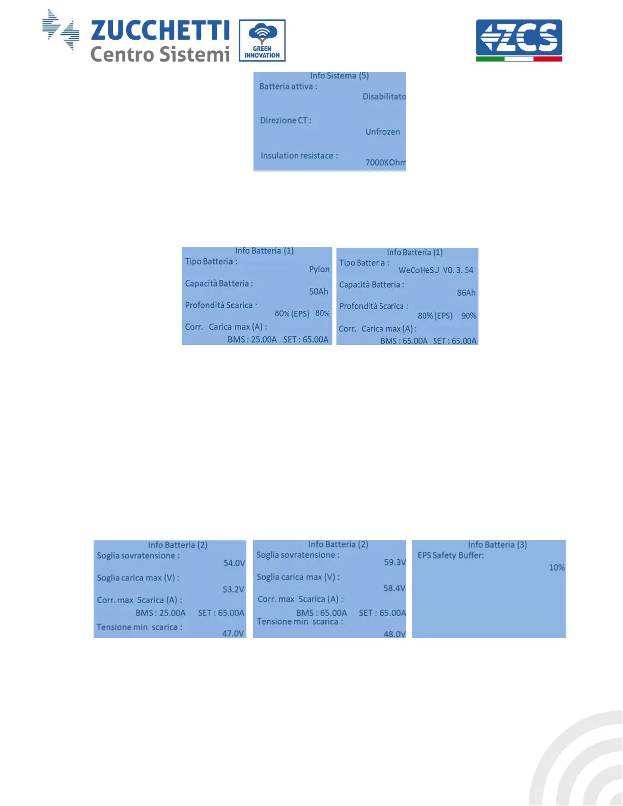 Depth of discharge: check the depth of discharge values set in On-grid and EPS mode.