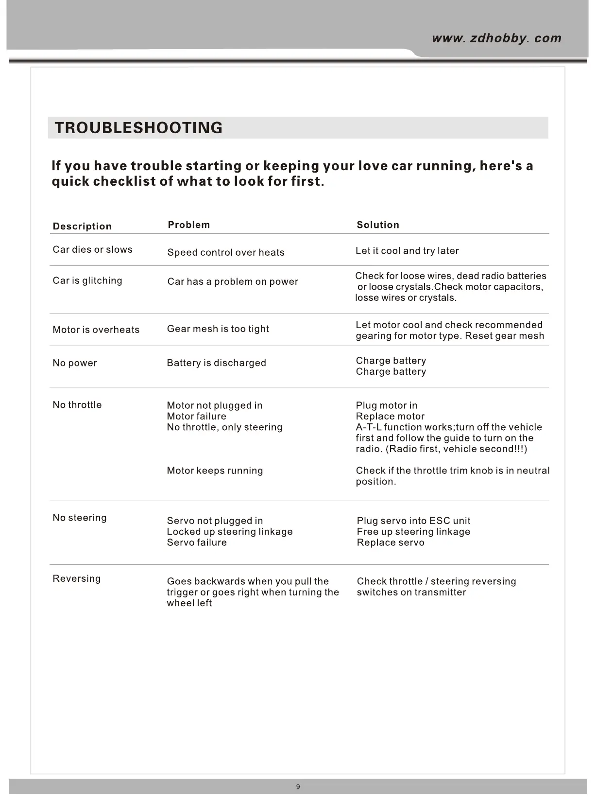 ZD Racing 9021 - Troubleshooting Guide; Common Issues and Solutions Checklist