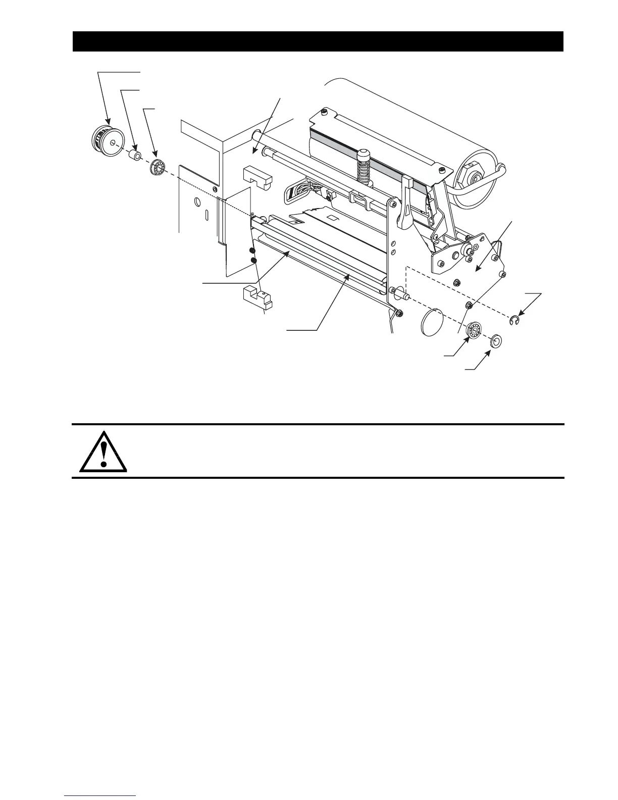 washer on the right of the platen roller. Secure the bearing and washer with the C-clip.