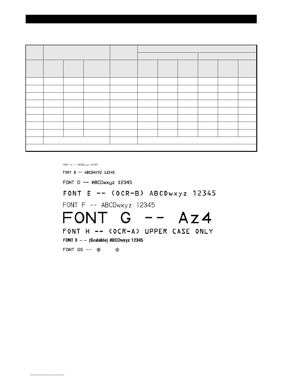 Table 1-2. Font Matrices for 12 dot/mm (300 DPI) 105SL Printheads