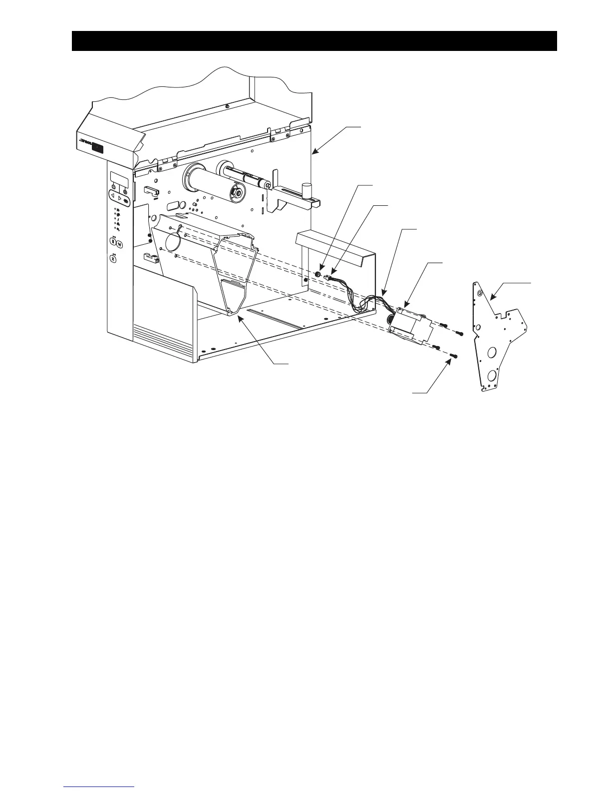 10. Ensure that the peel roller extends through the bearing in the side plate, and secure