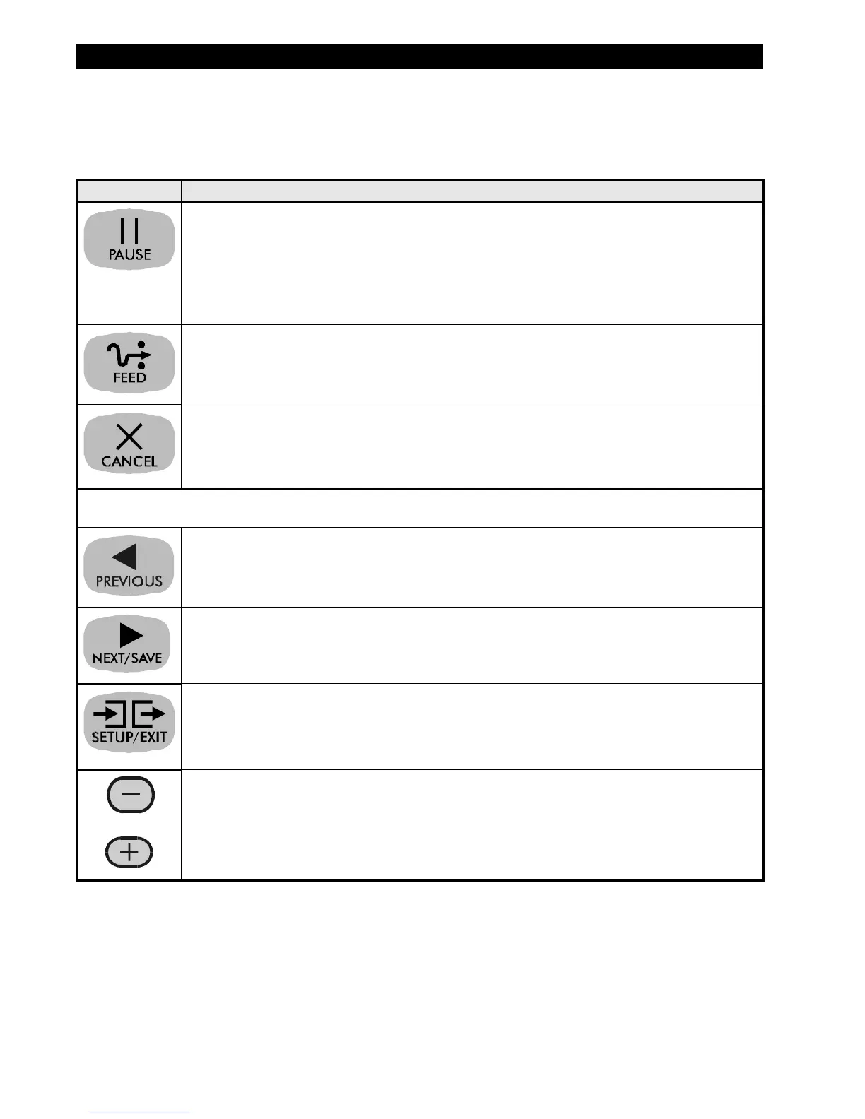 Forces the printer to feed one blank label each time the key is pressed.