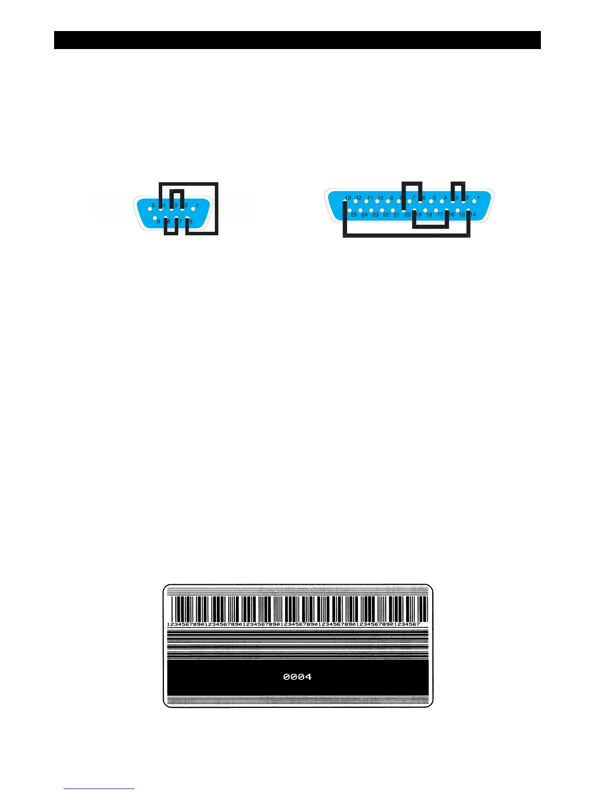 The serial loopback connector is a 25-pin or 9-pin “D” Type Male with the following pins tied