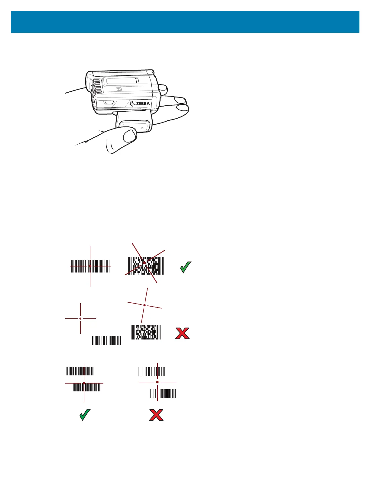The red laser aiming pattern turns on to assist in aiming. Ensure the barcode is within the area formed