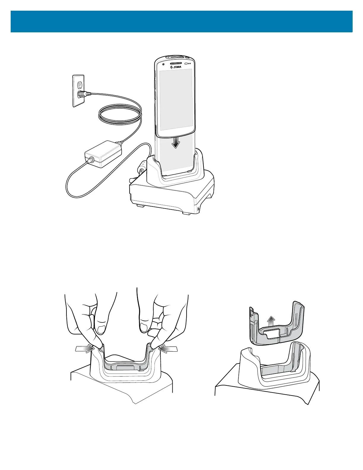 Each cradle cup has an insert that must be removed prior to inserting a device with a rugged boot or