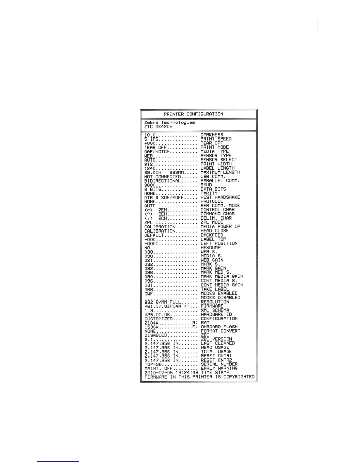 To print out a listing of the printer’s current configuration, refer to the one-flash sequence in