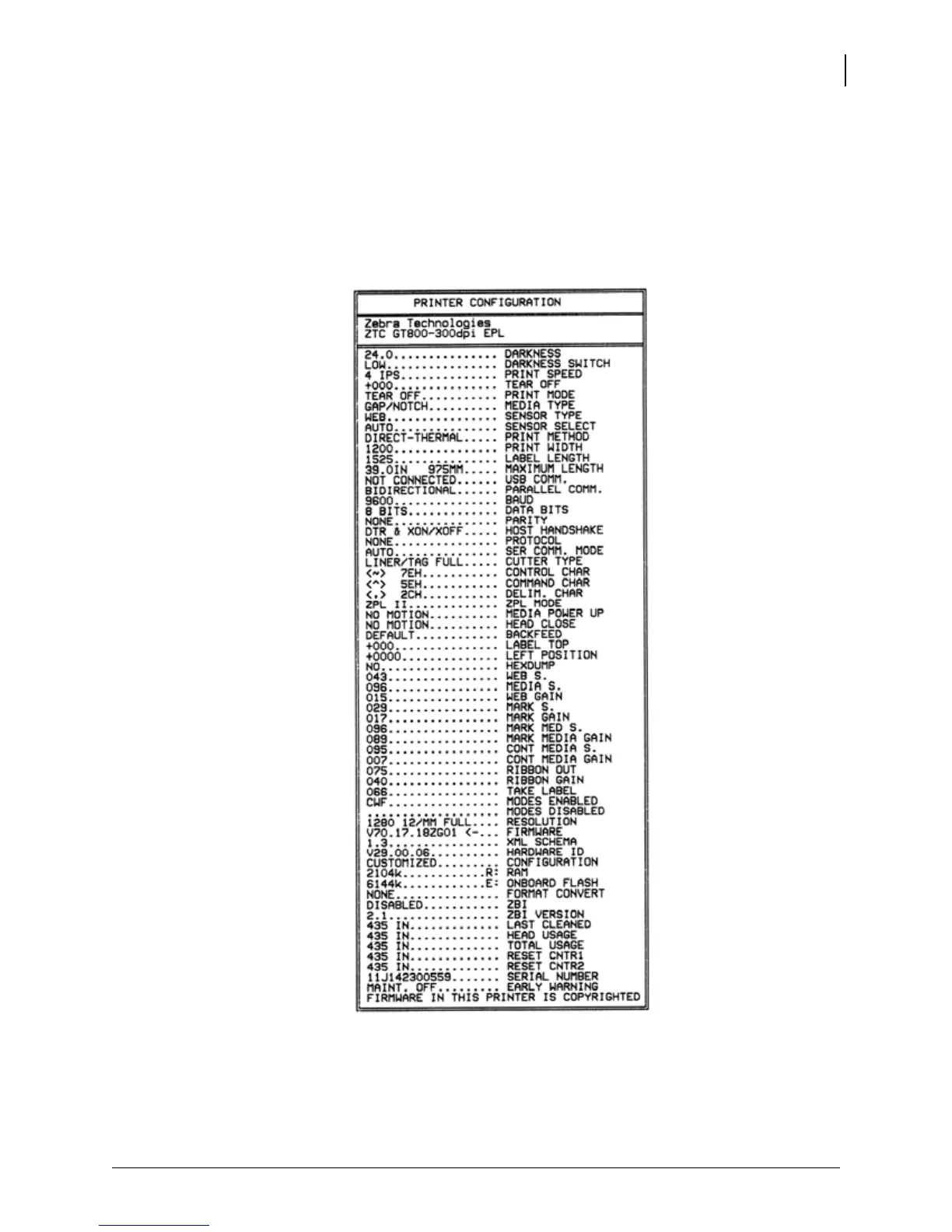 To print out a listing of the printer’s current configuration, refer to the one-flash sequence