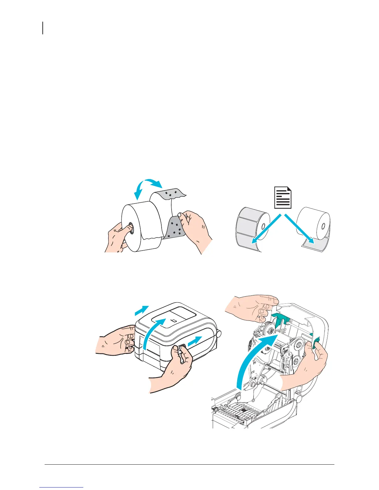 Whether your roll media is inside or outside wound, you load it into the printer the same