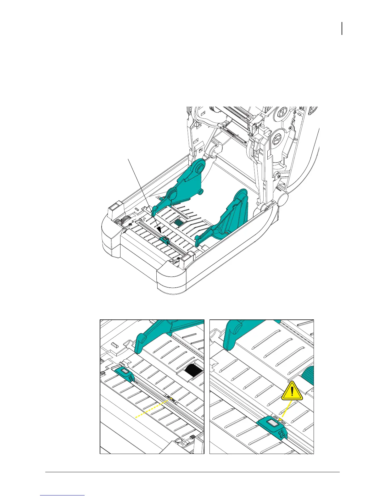 Verify that the movable black mark sensor is aligned in the center default position. This is the