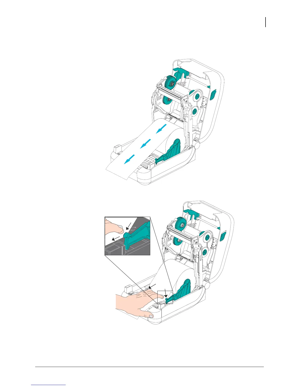 3. Pull the media so that it extends out of the front of the printer. Verify the roll turns freely.