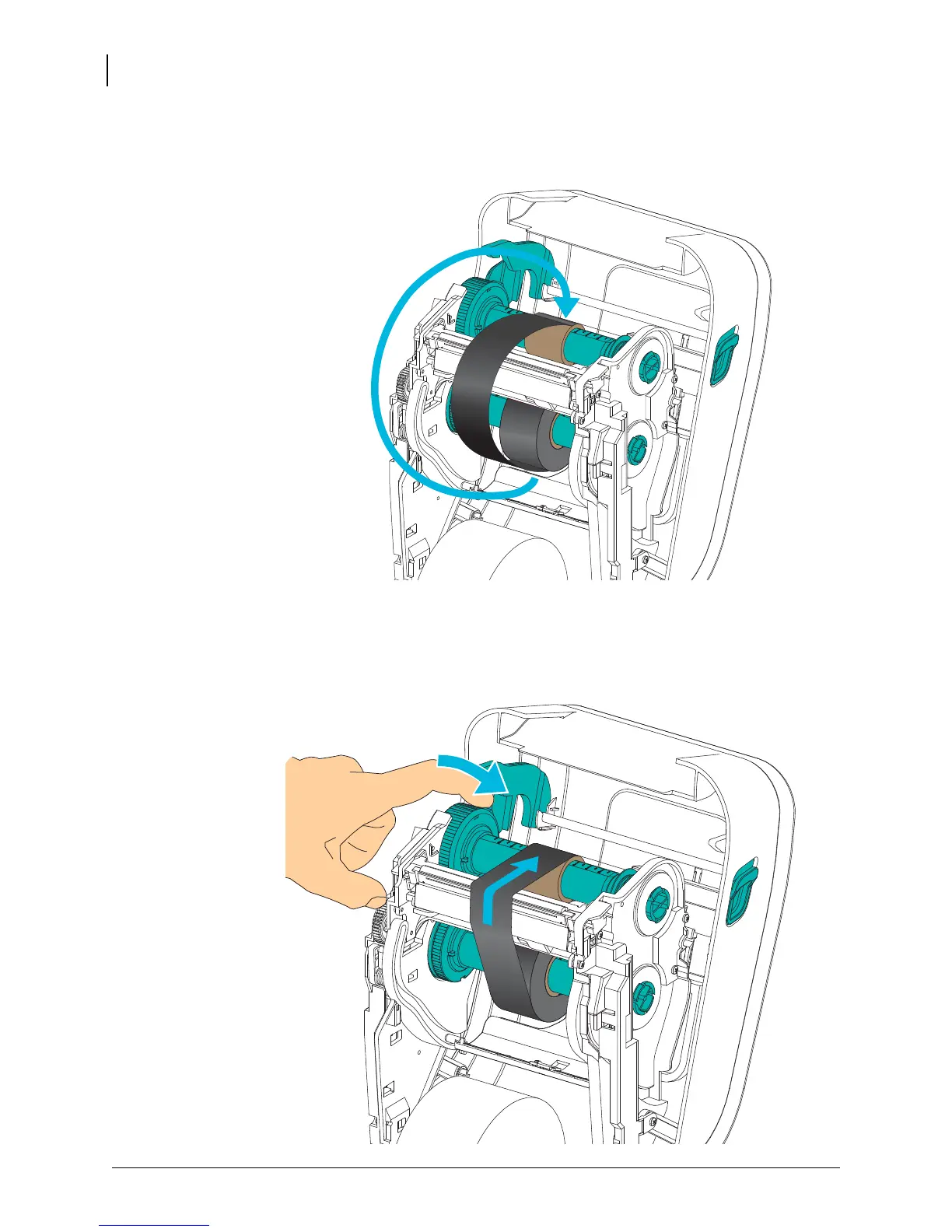 ribbon. Rotating the hub helps to finish aligning the take up ribbon position with the