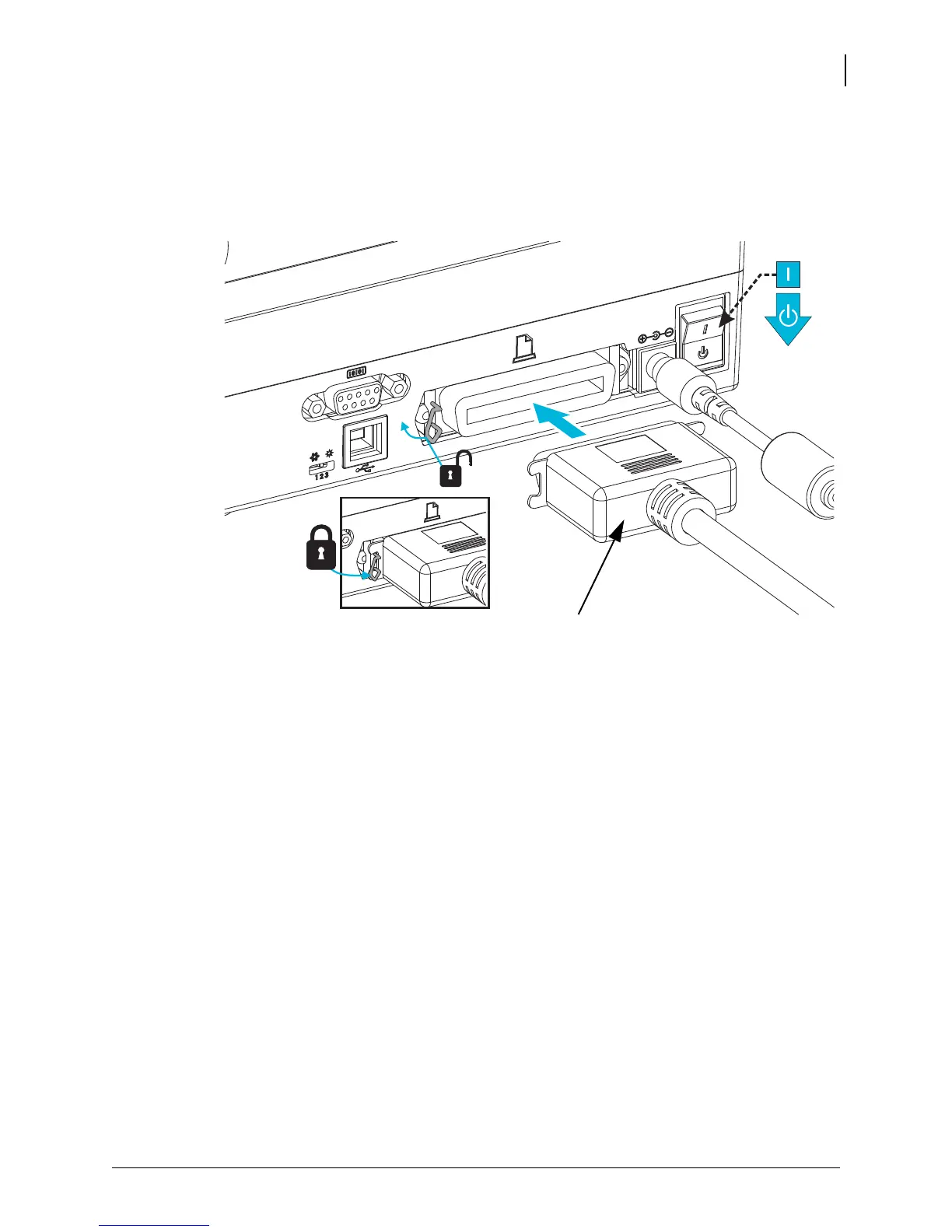 The required cable must have a 25 pin “D” type (DB-25P) male connector (host) on one end