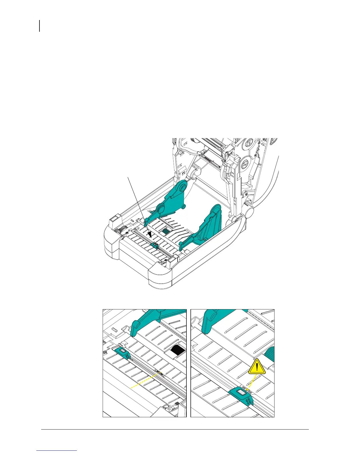 The movable black mark sensor allows the printer to use media with black marks or notches