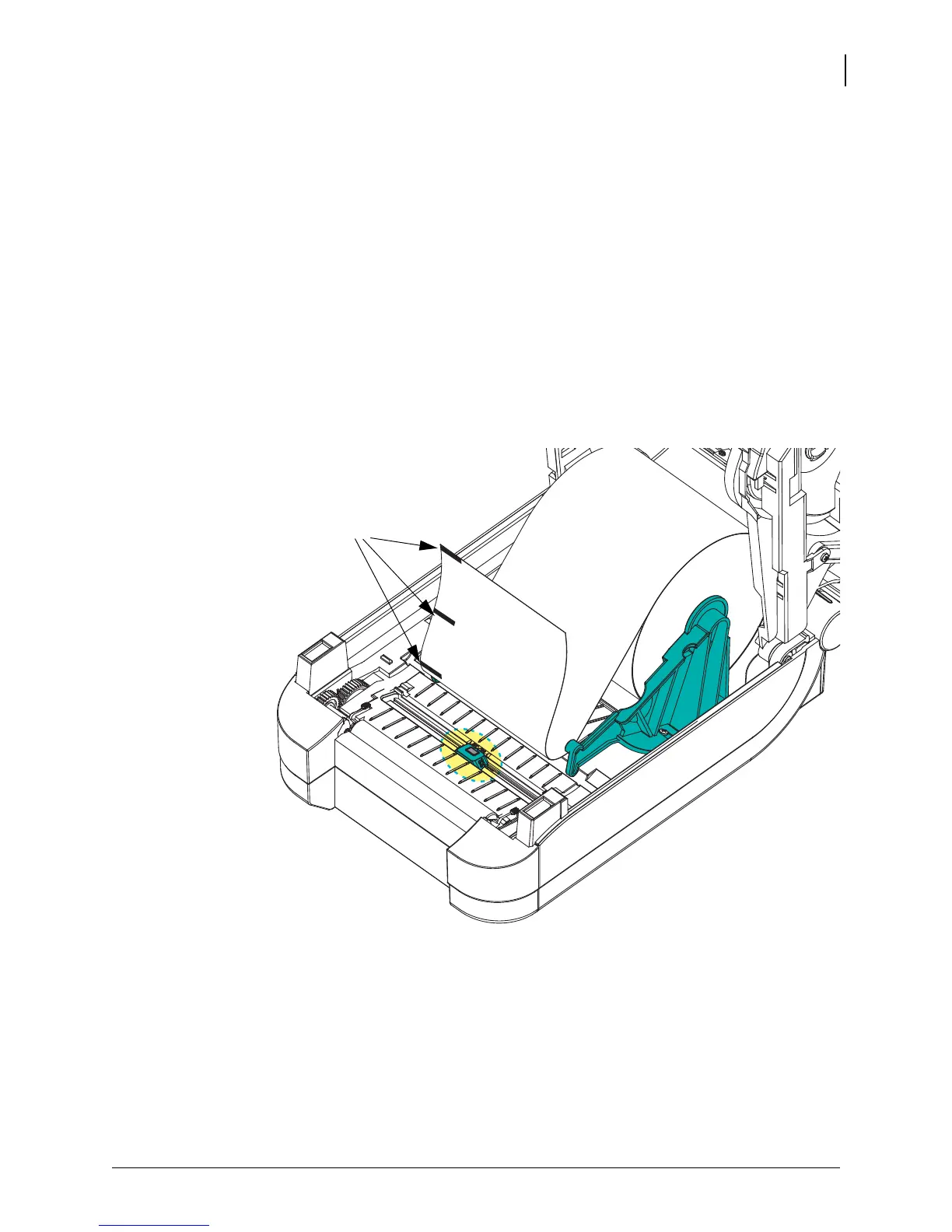 Load the media. Before closing the printer, adjust the movable black mark sensor as follows:
