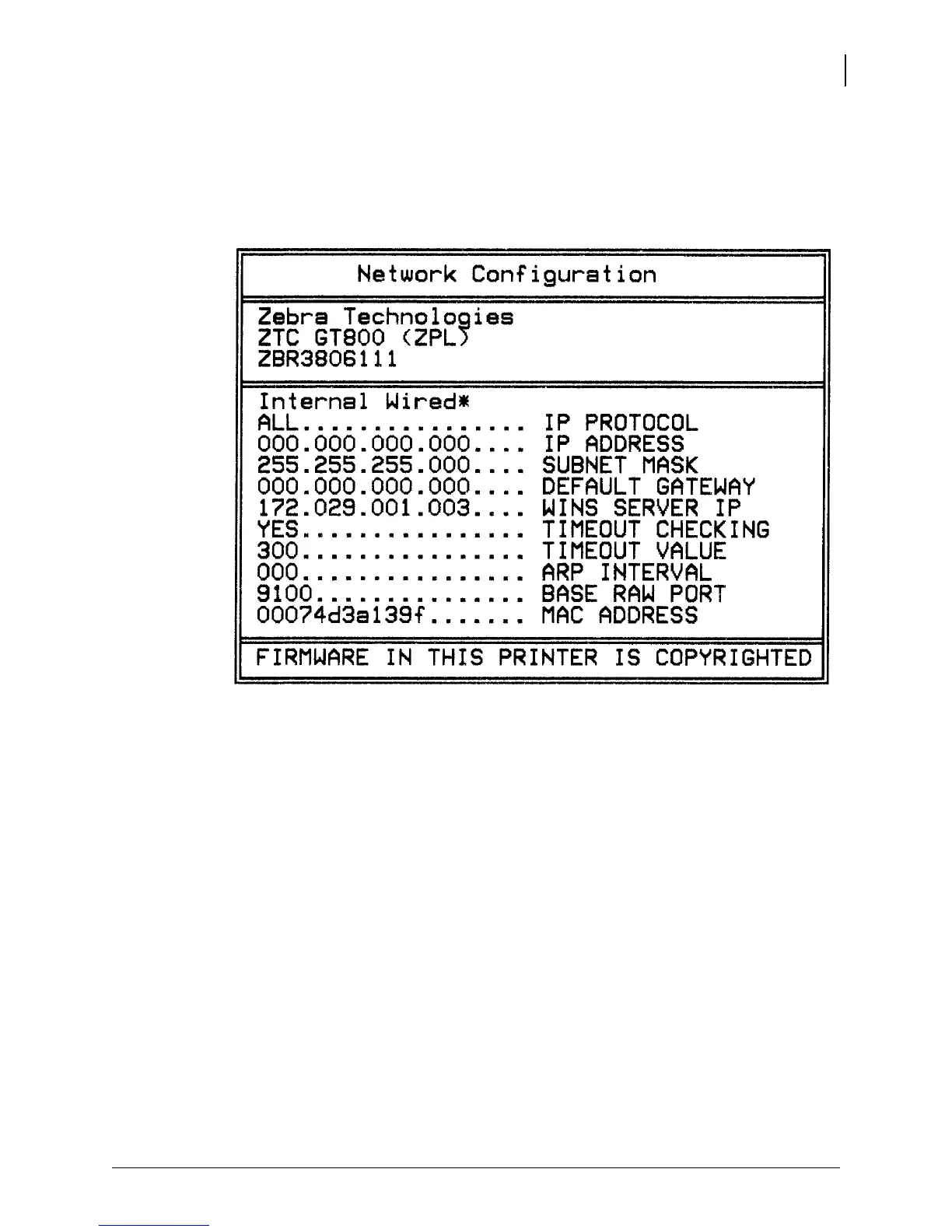 and trouble shoot network printing. The following printout is printed with the ZPL