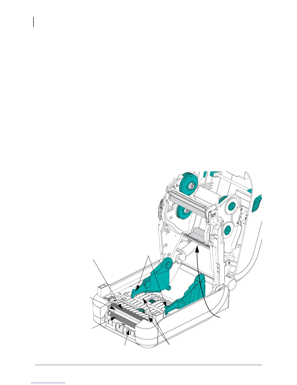 6. Clean the dispenser (if installed) pinch roller and peel bar.
