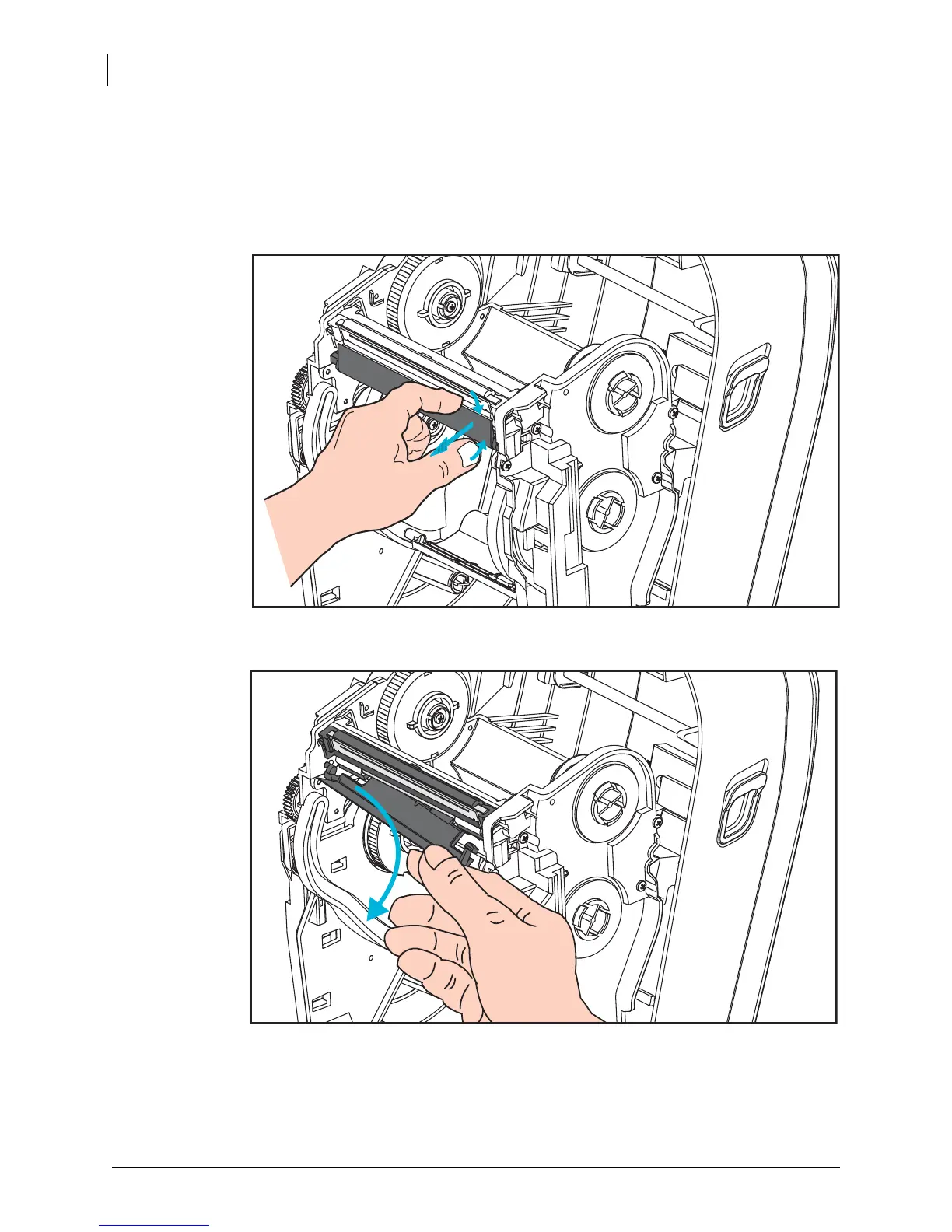 2. Grasp the right side of the printhead’s cover bracket and gently pull the bracket way from