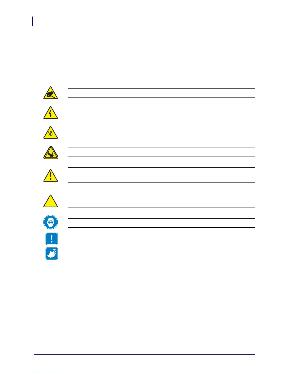 Caution • Warns you of the potential for electrostatic discharge.