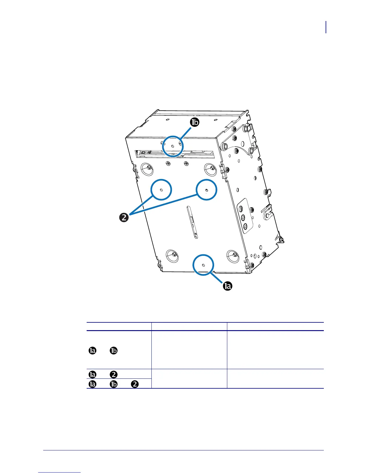 mounting positions connecting the printer’s base to a rigid metal base plate in the kiosk.
