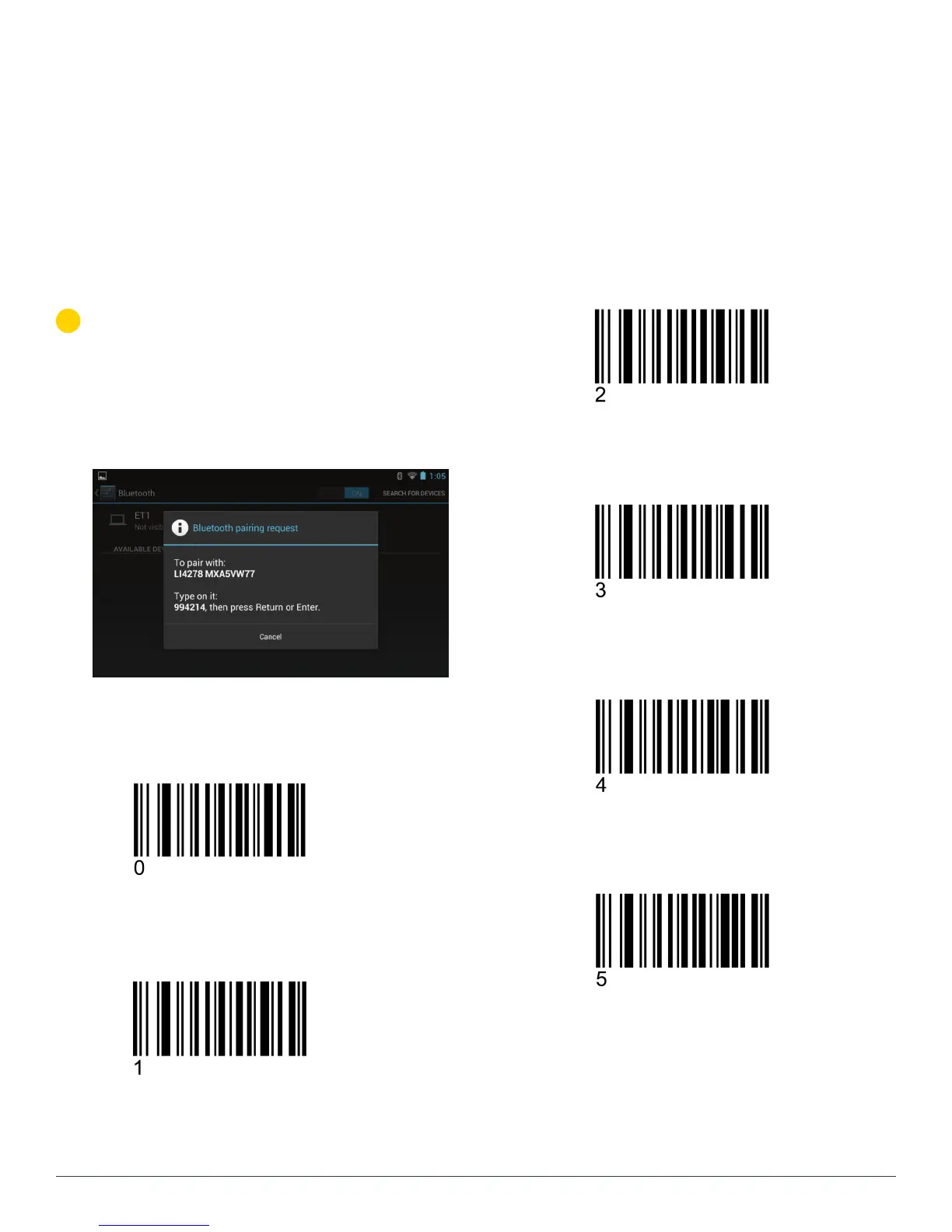 A pin code is issued. Scan the pin code followed by