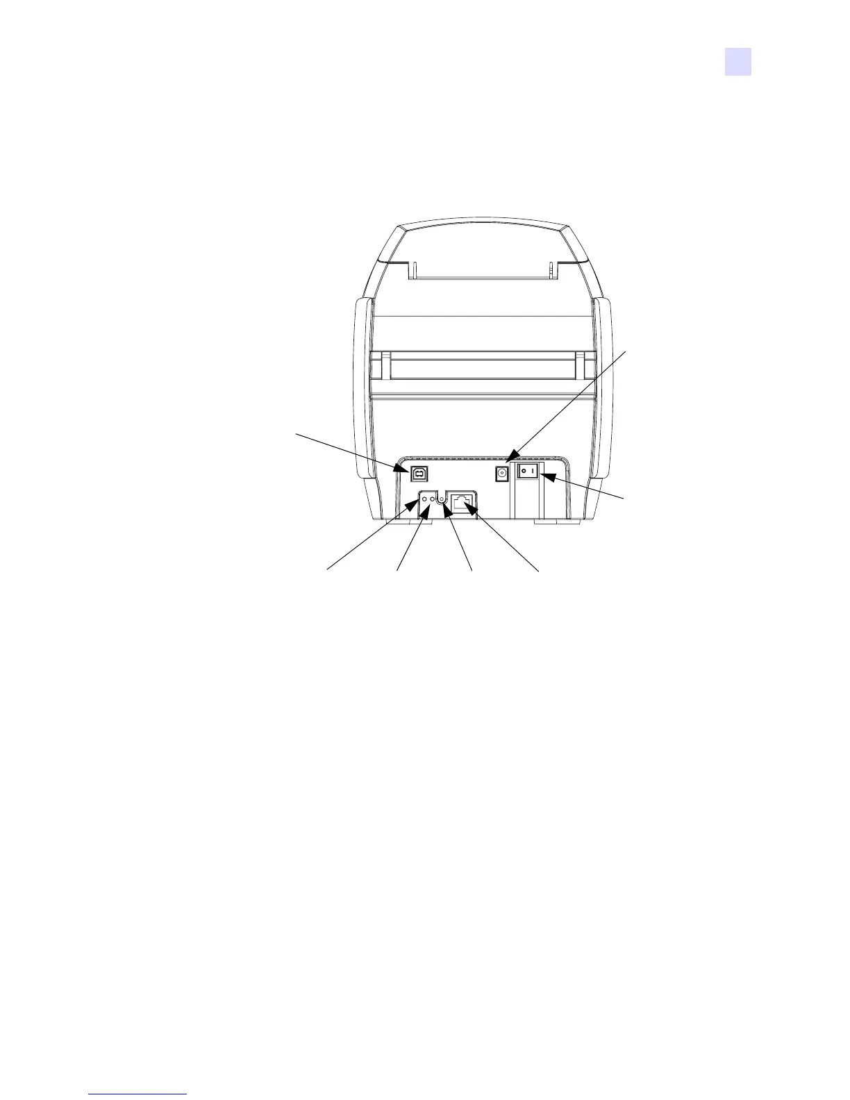 If your Printer includes the Ethernet option, the rear of the printer will look like the figure