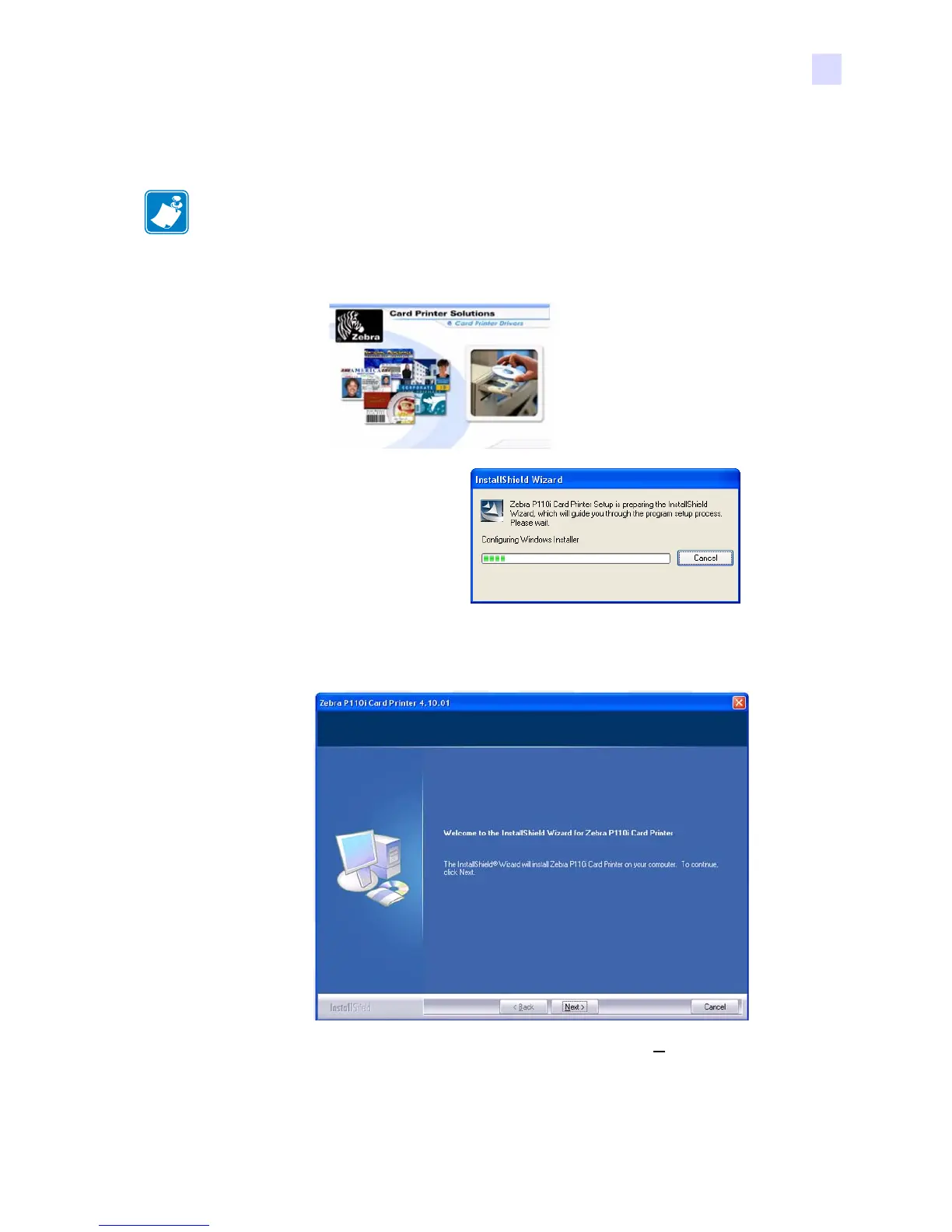 Note • Note that the Driver installer will refer to the P110i. Remember, the same driver is