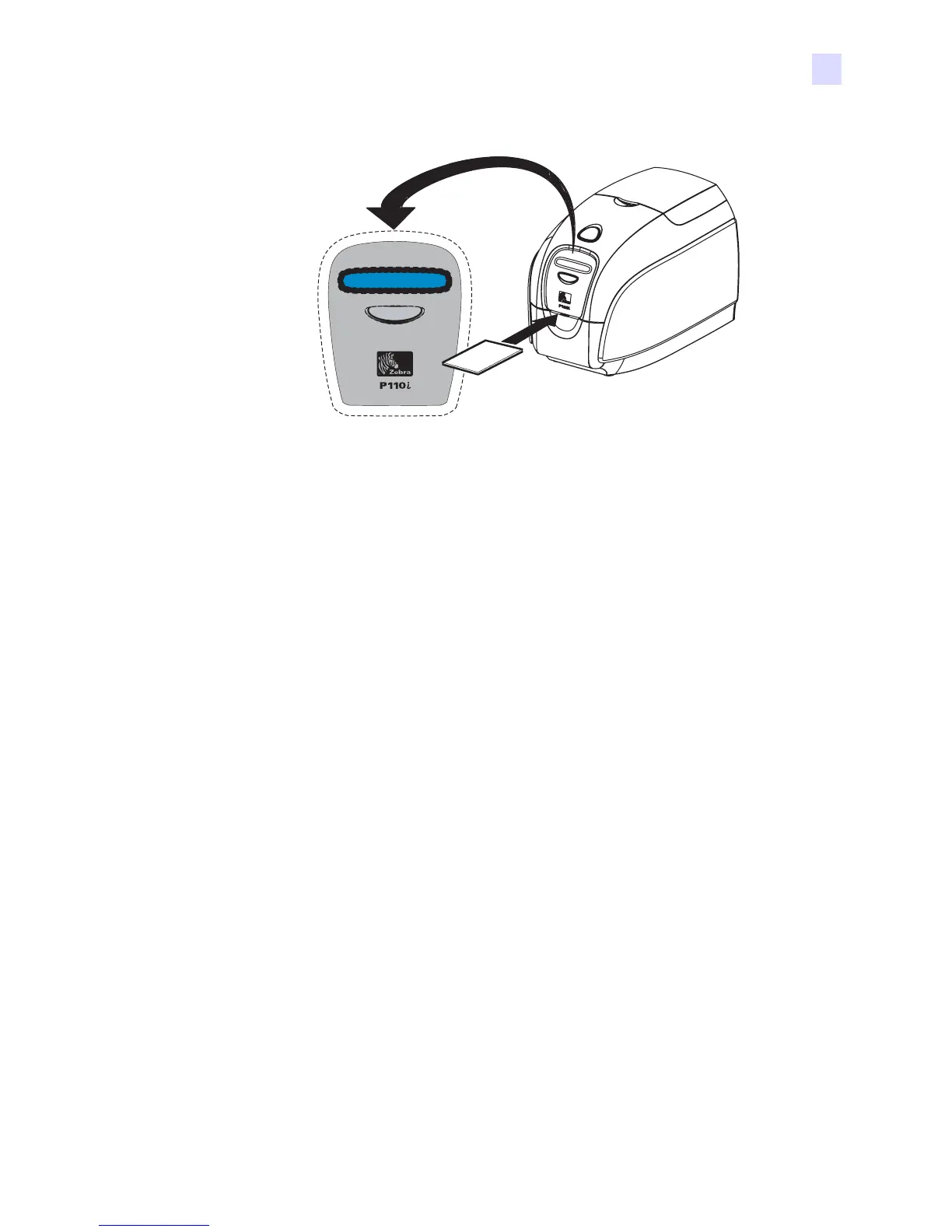 2. Insert a single card into the slot at the front of the printer, directly above the card output