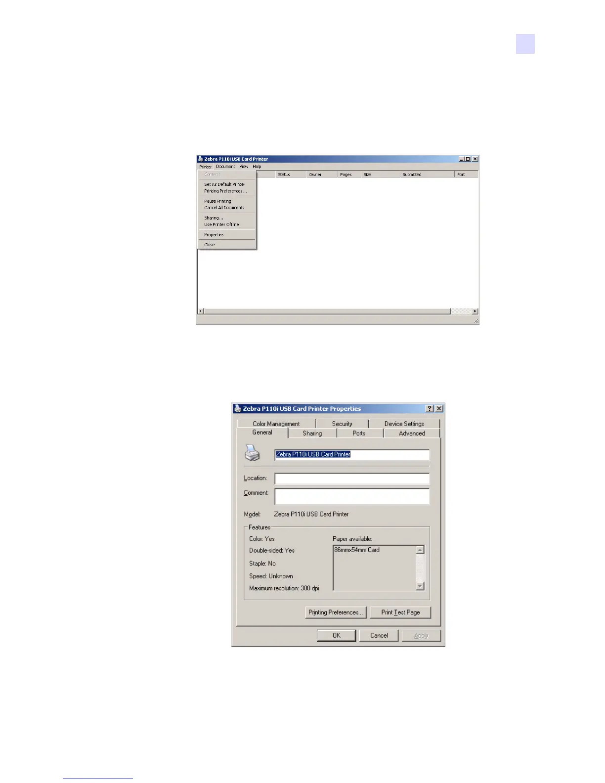 Properties from the pop-up menu. The Printer Properties window will open.