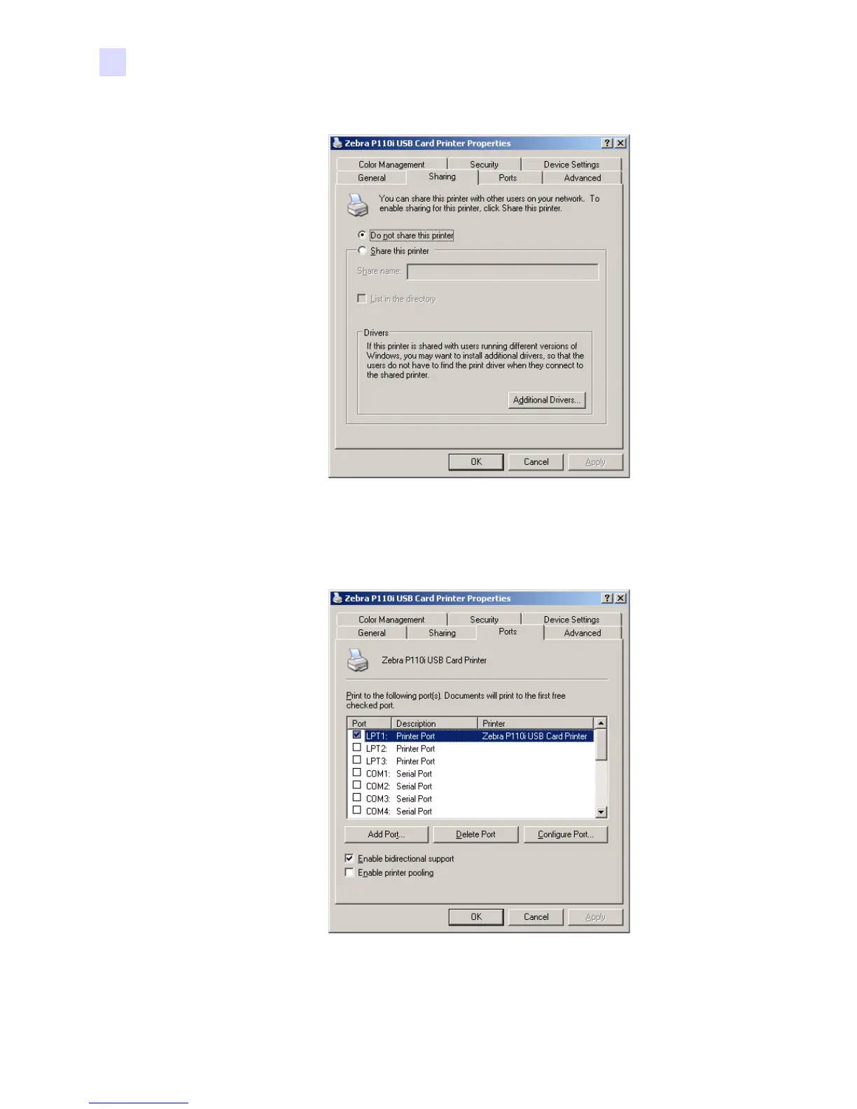 5. On the Ports tab, you can add, delete, and configure the printer ports, as well as choose