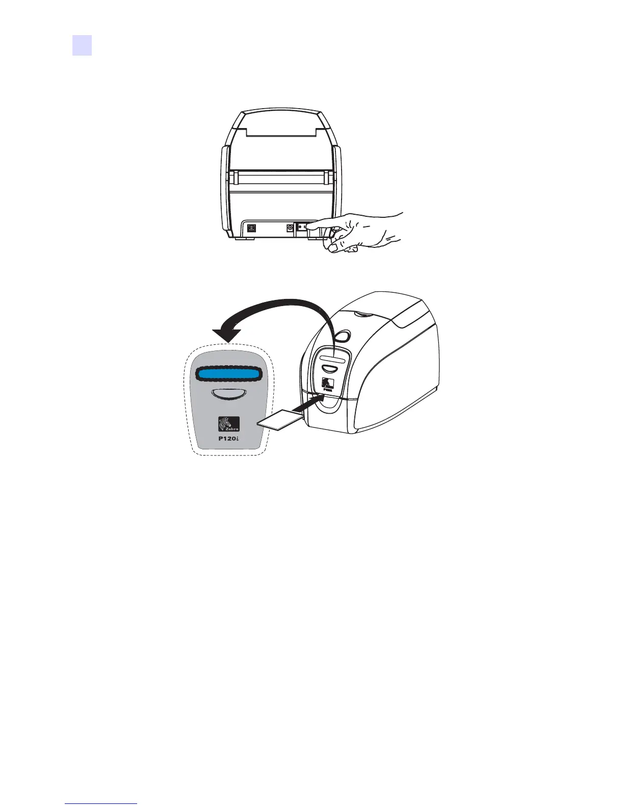 2. Insert a single card into the slot at the front of the printer, directly above the card output hopper. Do