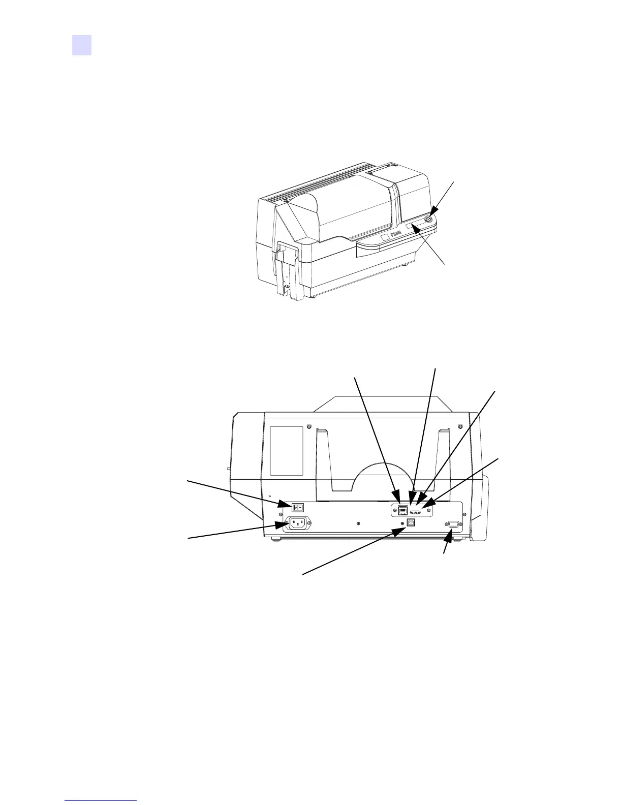 power switch, and interface connector(s) on the rear panel.