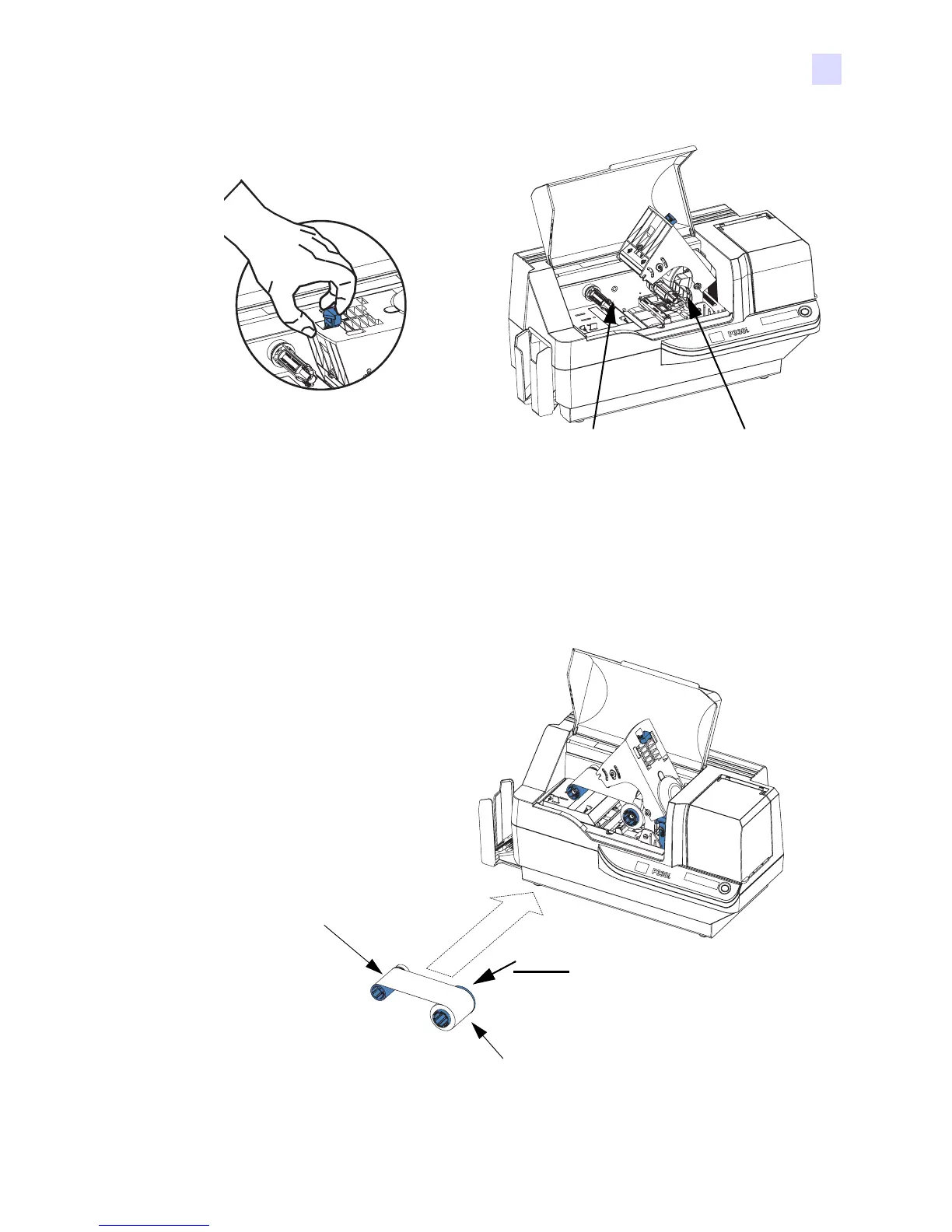 Step 3. Locate the Ribbon Supply Spindle and the Ribbon Take-up Spindle (see above).