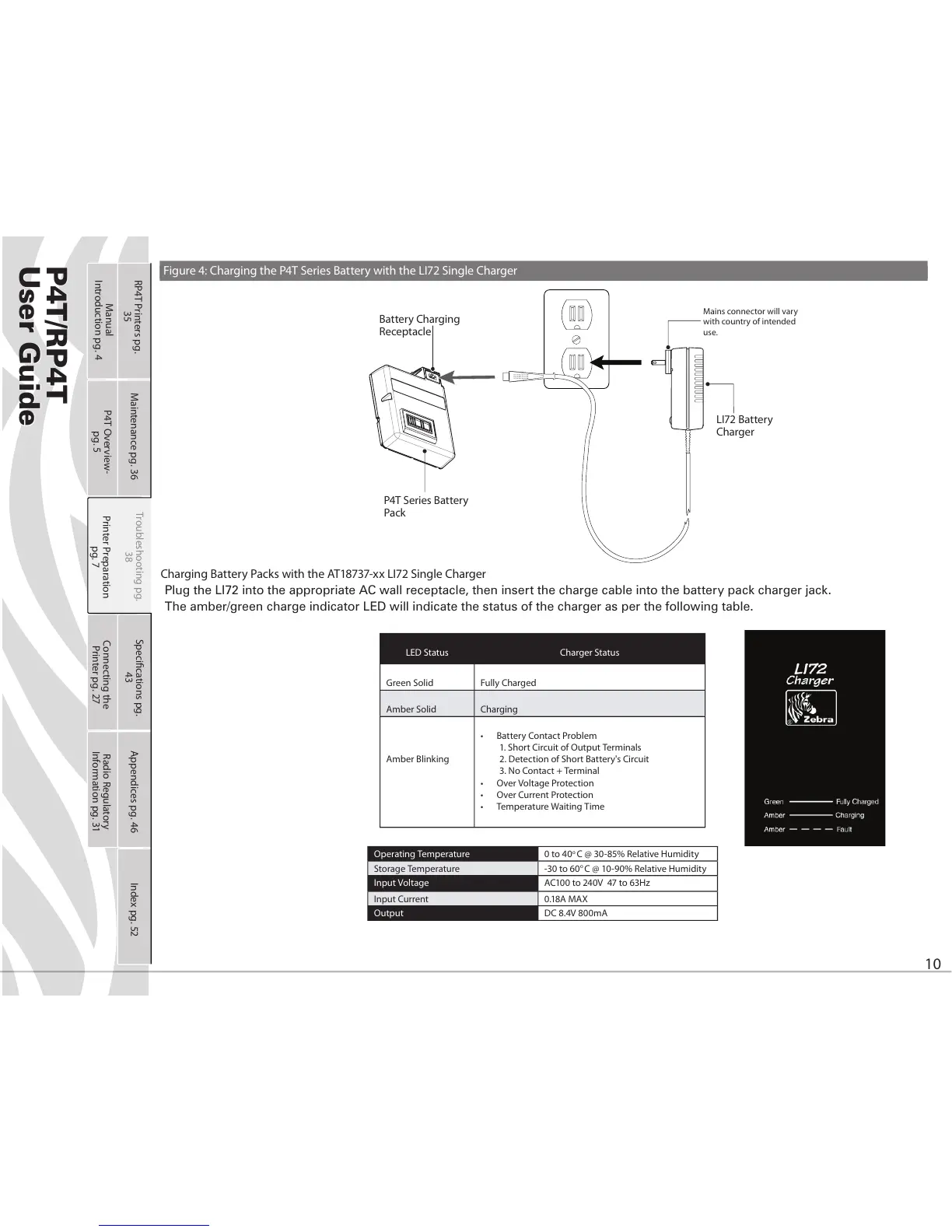 Figure 4: Charging the P4T Series Battery with the LI72 Single Charger