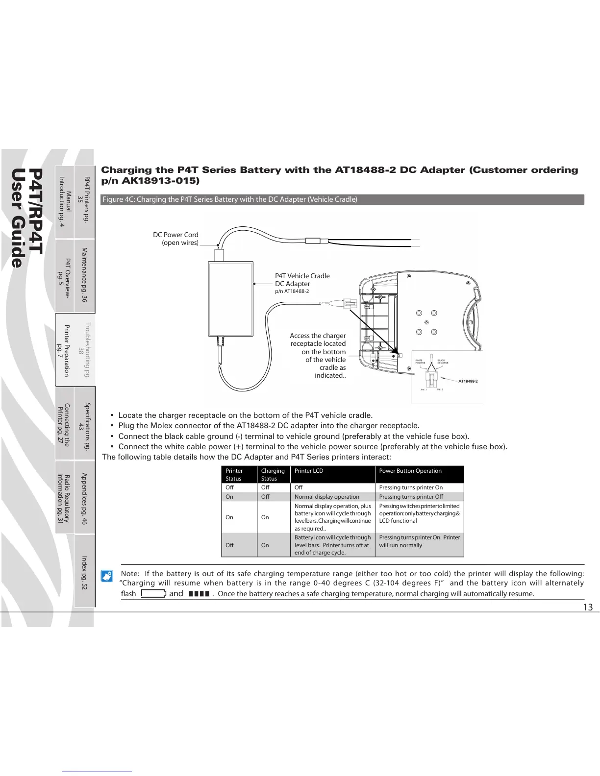 Figure 4C: Charging the P4T Series Battery with the DC Adapter (Vehicle Cradle)