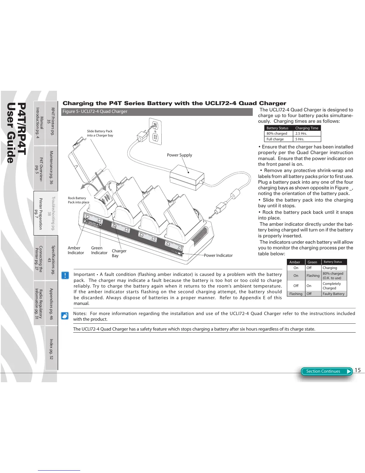 Notes: For more information regarding the installation and use of the UCLI72-4 Quad Charger refer to the instructions included