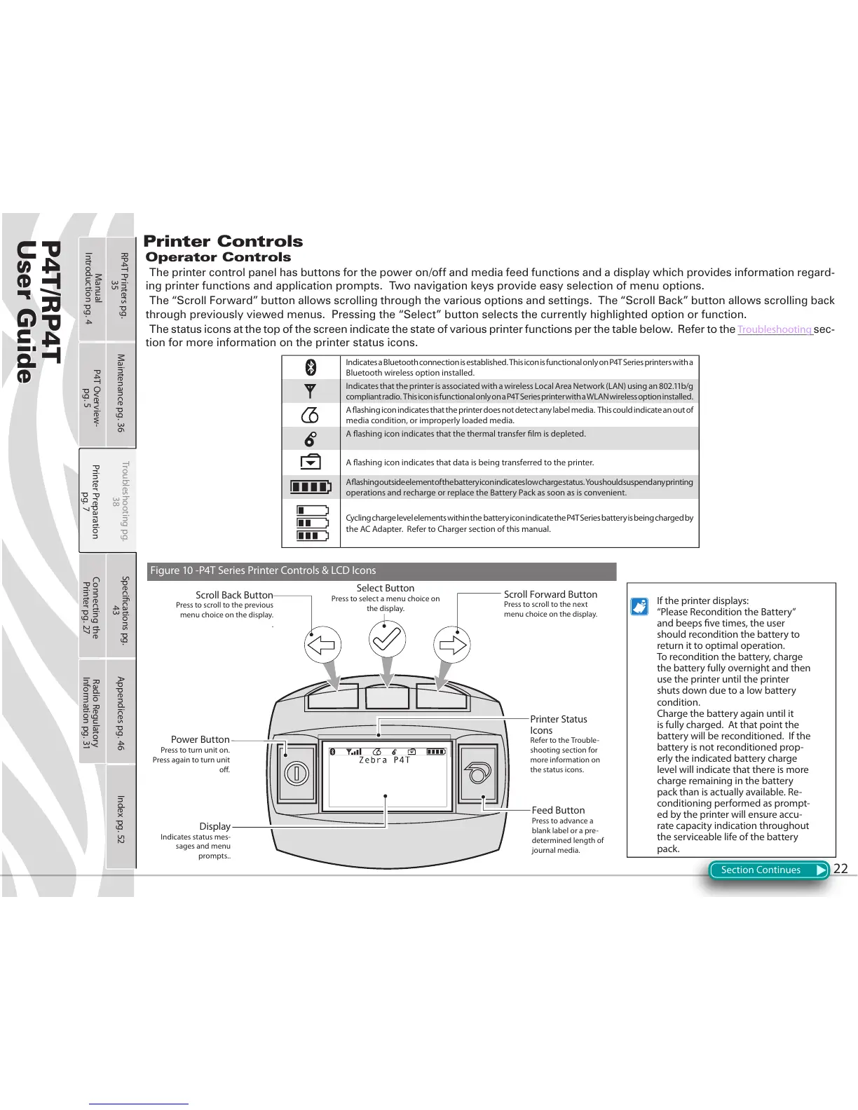 Figure 10 -P4T Series Printer Controls & LCD Icons