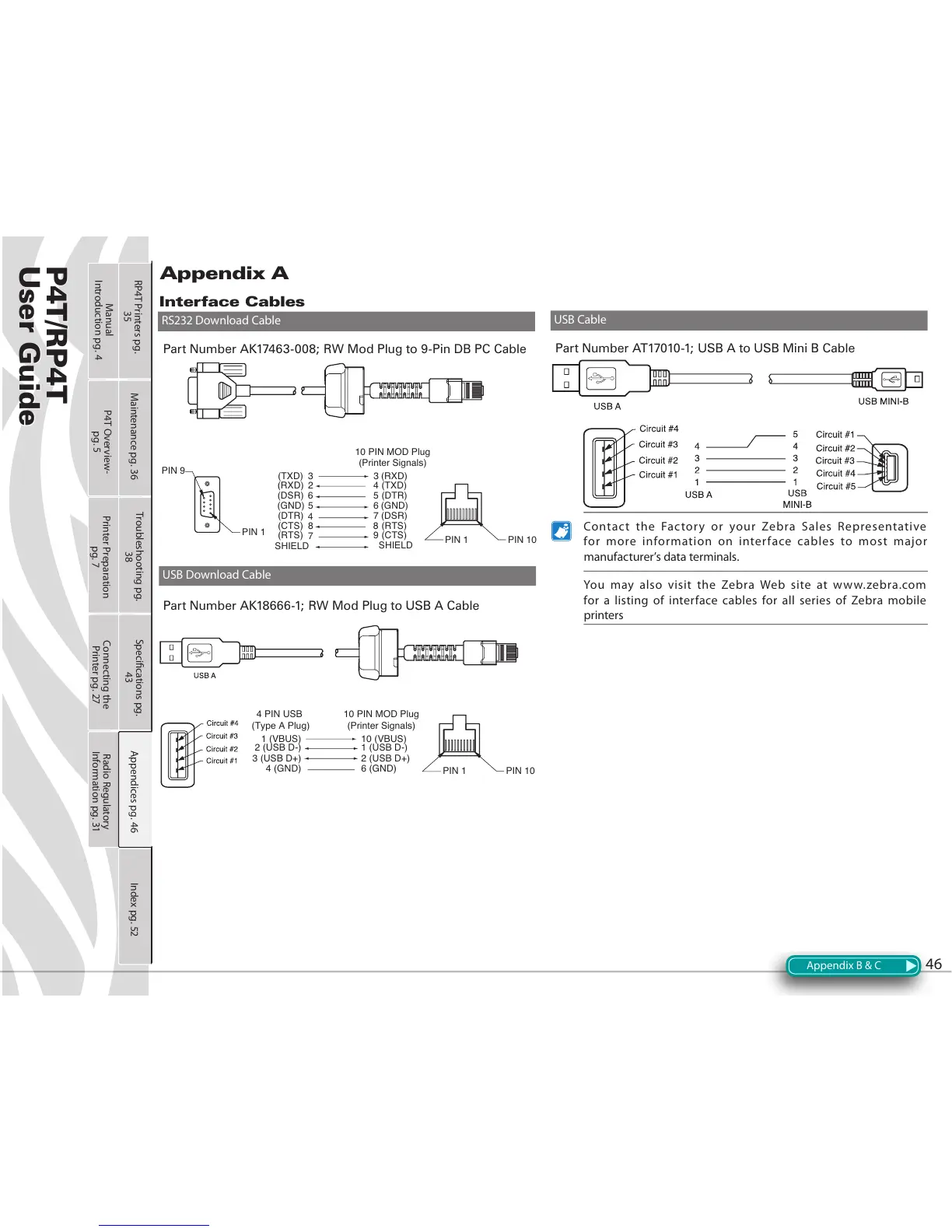 for a listing of interface cables for all series of Zebra mobile