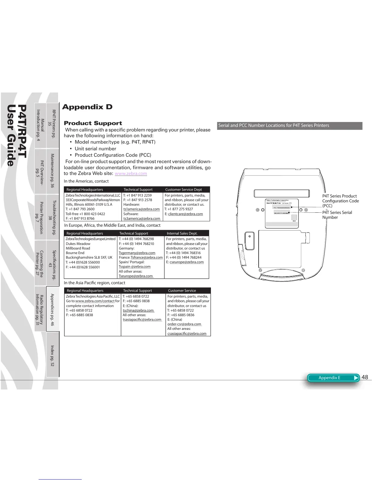 Serial and PCC Number Locations for P4T Series Printers