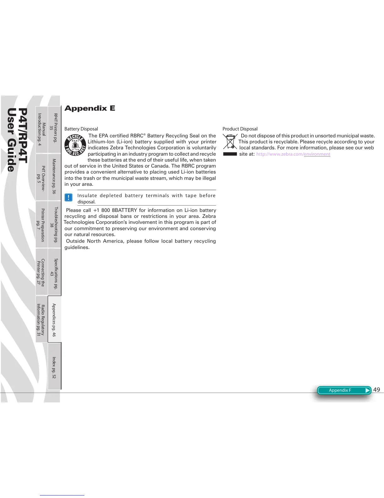 UHF\FOLQJ DQG GLVSRVDO EDQV RU UHVWULFWLRQV LQ \RXU DUHD =HEUD
