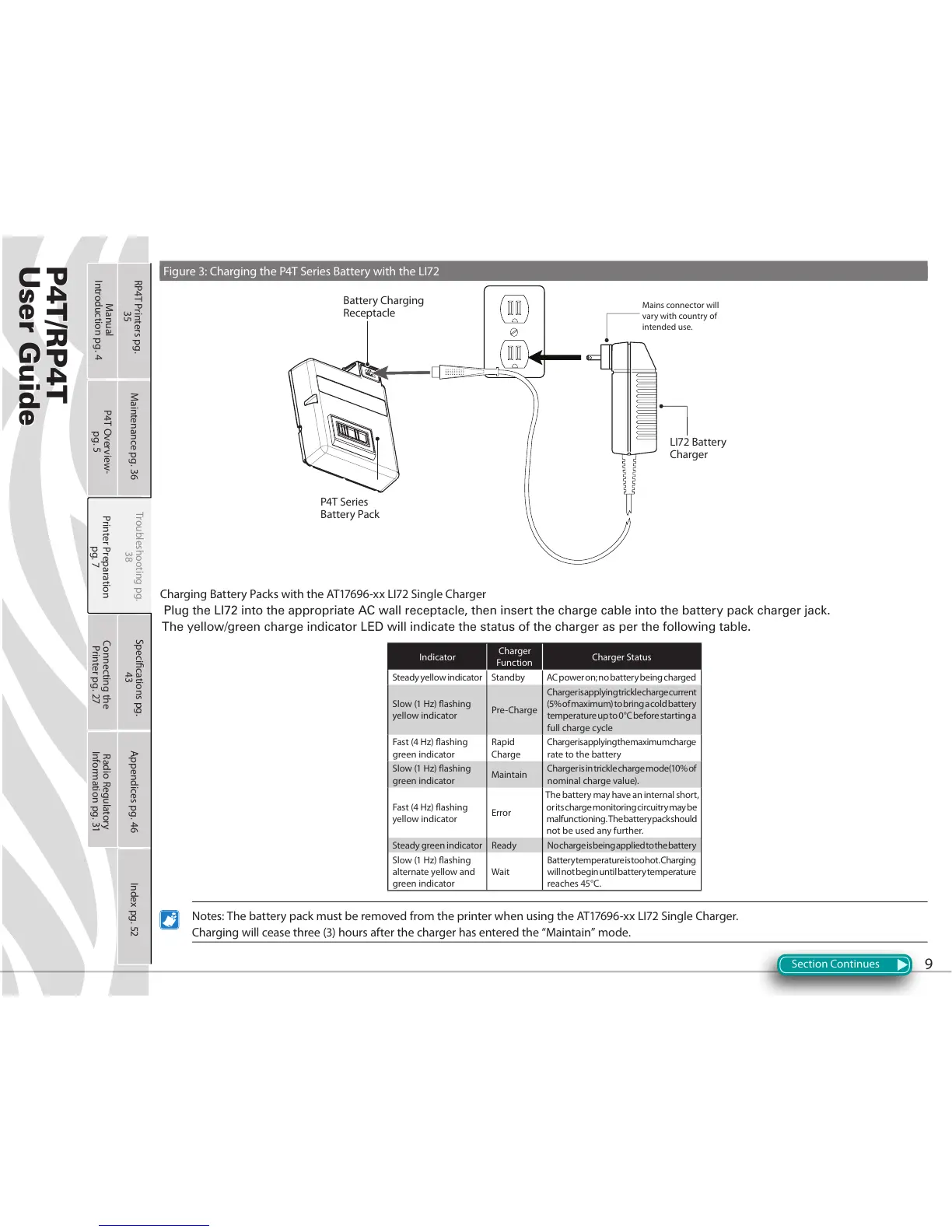 Notes: The battery pack must be removed from the printer when using the AT17696-xx LI72 Single Charger.
