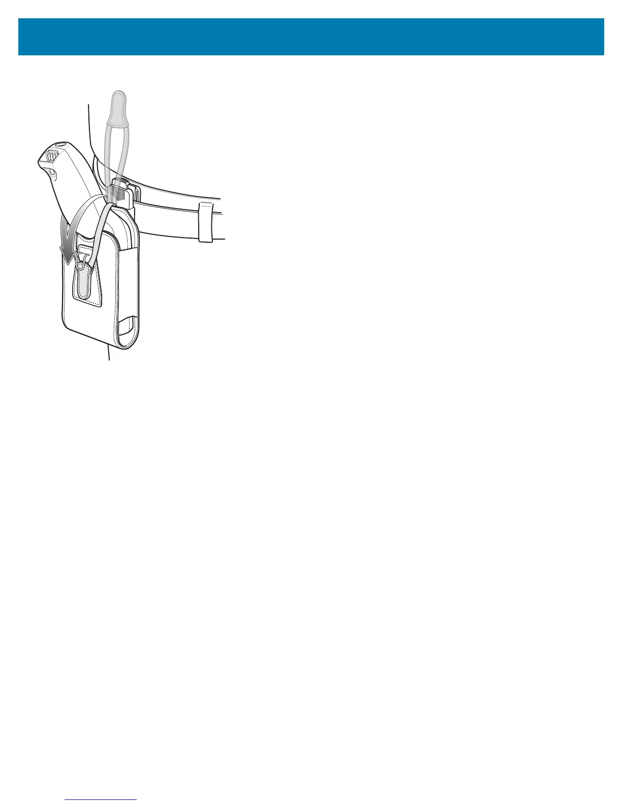 5. To remove the device, lift the restraining strap to release. Lift the device out of the soft holster.
