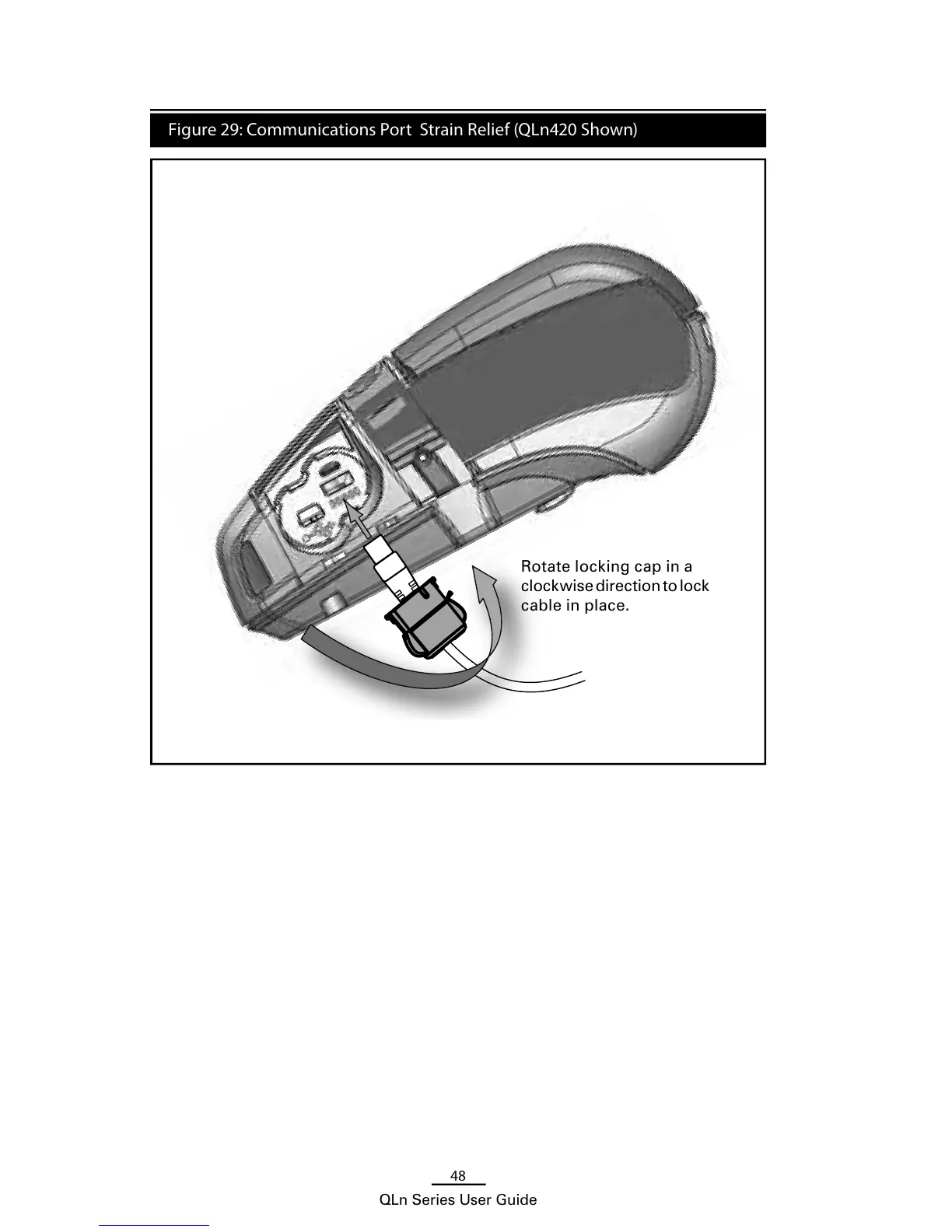 Figure 29: Communications Port Strain Relief (QLn420 Shown)