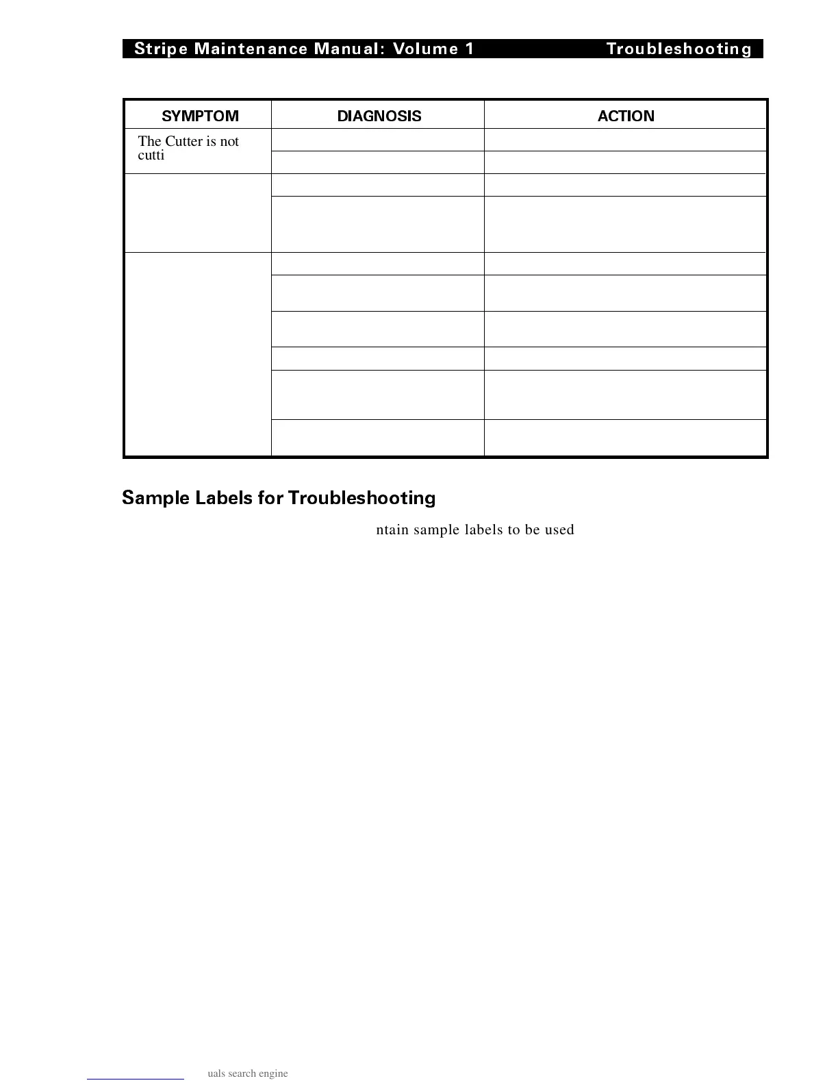 troubleshooting charts. These labels illustrate conditions which could be seen if