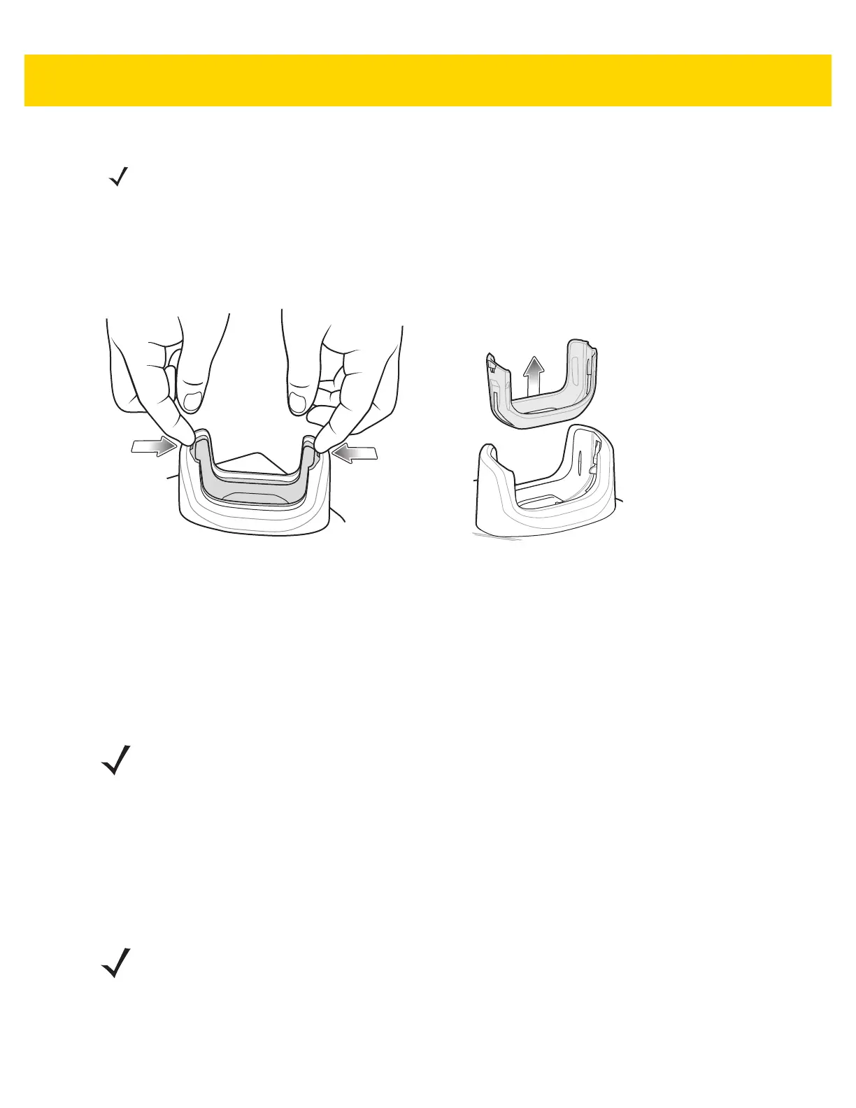 Each cradle cup has an insert that must be removed prior to inserting the TC51 with Rugged Boot. Remove the